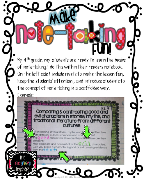 One of the skills I wanted to do a better job at teaching was note-taking skills. I notice that my students either struggle to keep up when copying something off the board or do not know what to highlight, circle, outline, abbreviate, etc. For each standard I include a note-taking box: